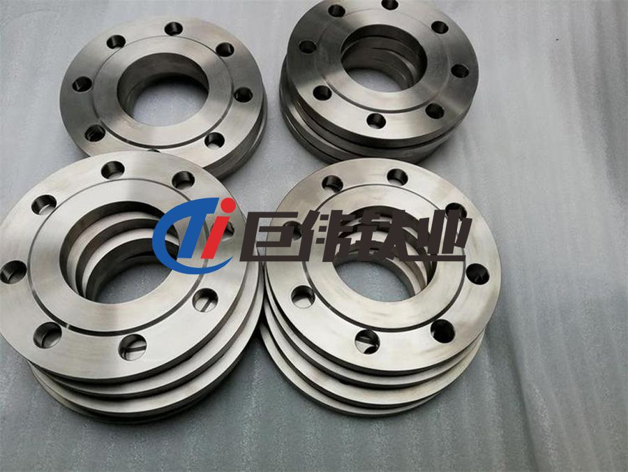 鈦法蘭上有孔眼,螺栓使兩法蘭緊連。法蘭間用襯墊密封。法蘭管件指帶有法蘭(突緣或接盤)的管件。